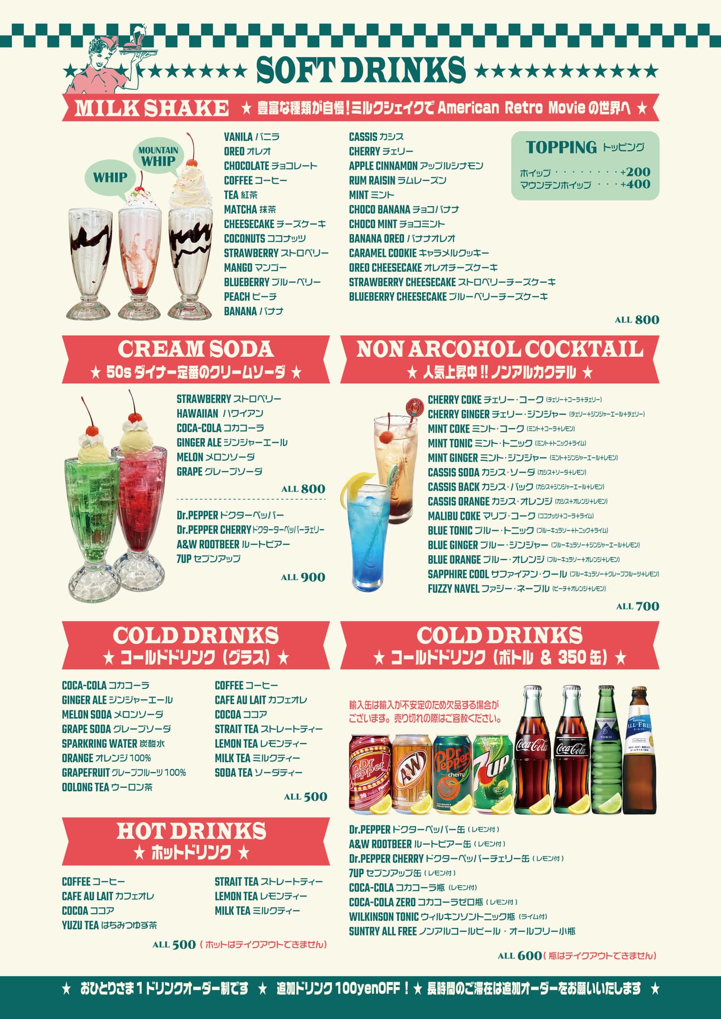 ソフトドリンク(400円までのメニュー)各種